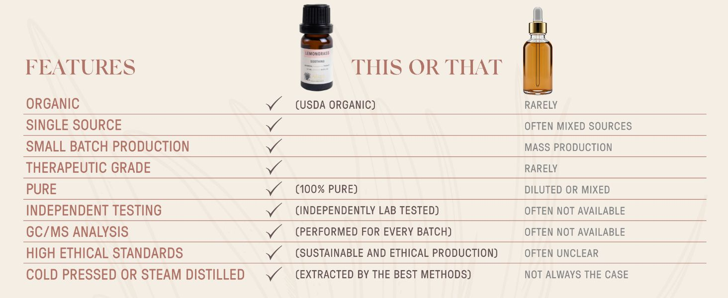 Purity: Organic essential oils are free from synthetic chemicals, ensuring a pure, natural product.